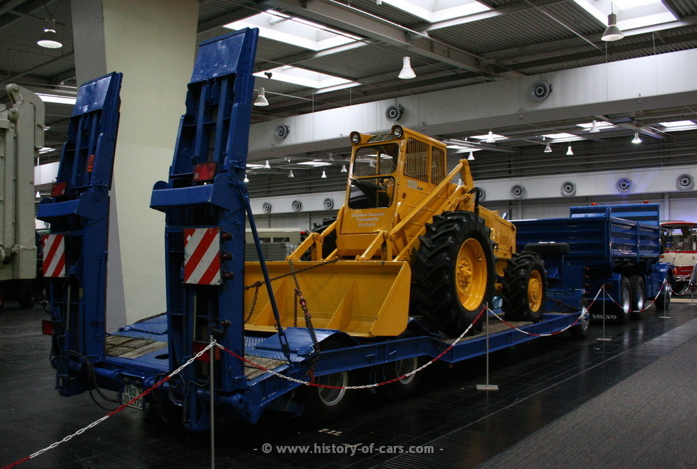 3achs-Tieflader (Langendorf) // Volvo Radlader LM840, BJ 1968, 9,2to Gewicht